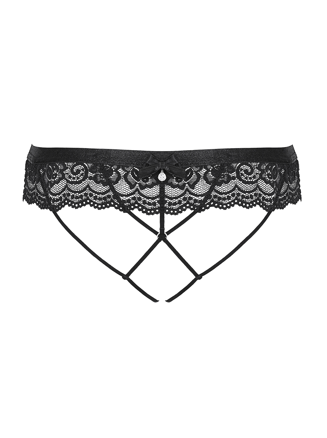 Absolut scharfes Höschen mit einem feinen Bund und schöner Spitze. Im Schritt offen mit elastischen Riemchen, einem glänzenden Schmuckelement und Kreis (nickelfrei) und einer Satinschleife. Schönes und elastisches Material.