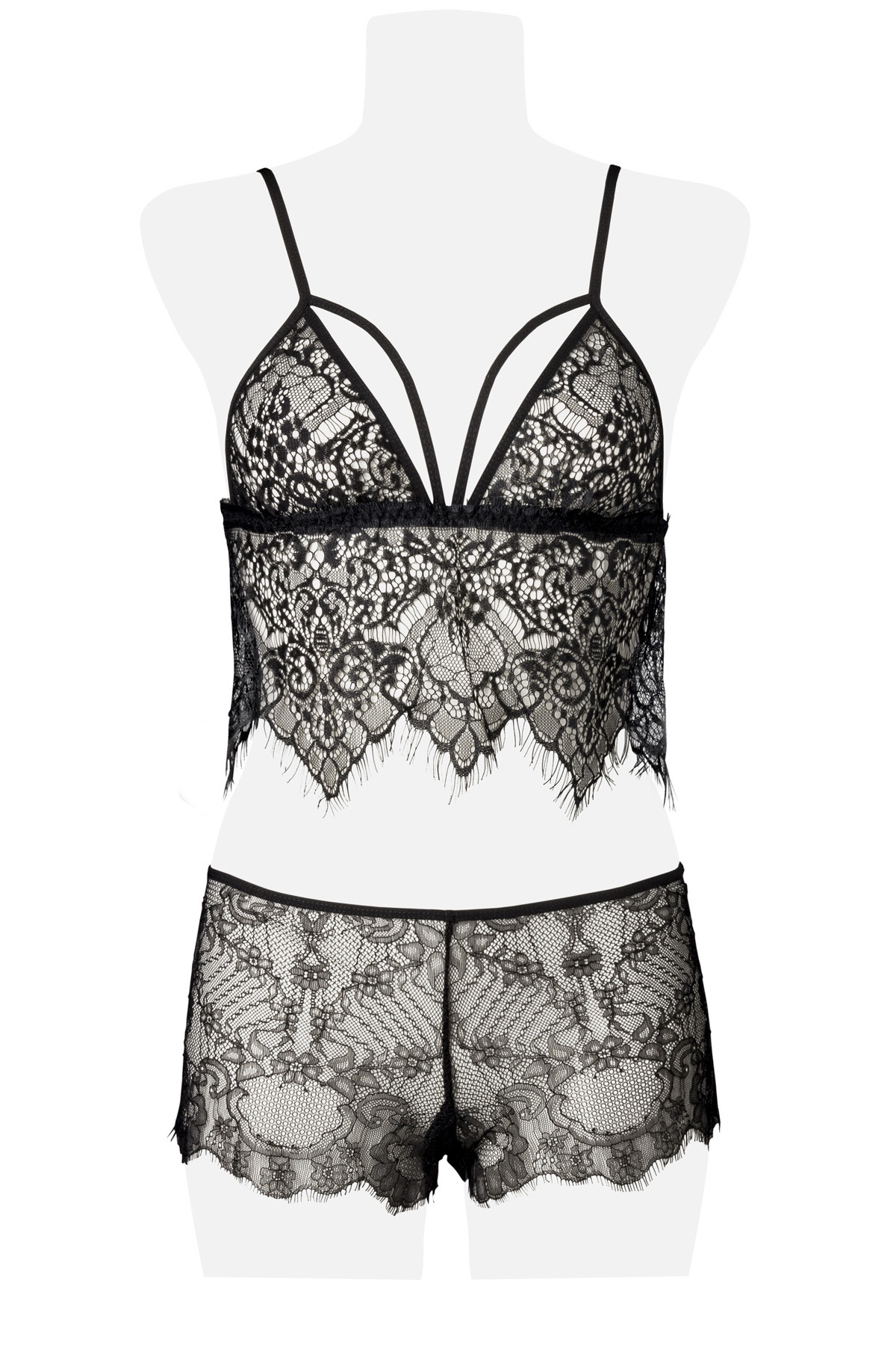 2-teiliges Set, gefertigt aus dehnbarer Spitze. Die Träger sind verstellbar.