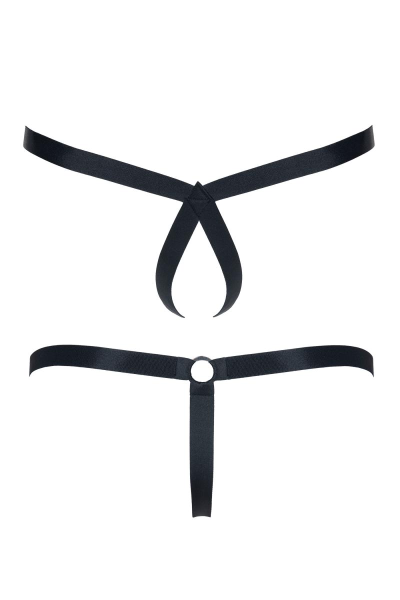 Erotisches Herren Dessous 2er Set String in schwarz, gefertigt aus dehnbaren Gummibändern. 2er Pack. Eine Variante ist hinten ein String und die andere ist hinten geöffnet.