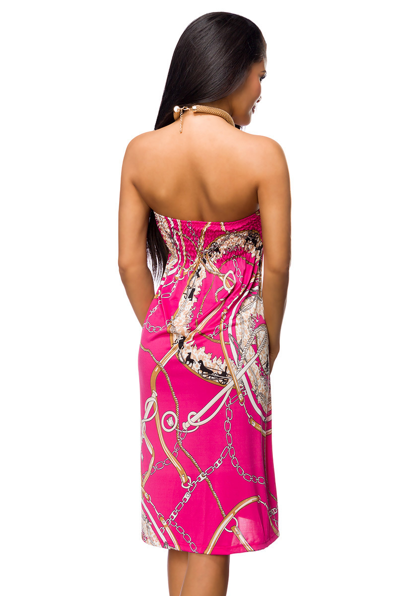 Produktinformationen "Bandeaukleid mit ausgefallenem Muster leicht ausgestellt mit gesmokter Rückenpartie"