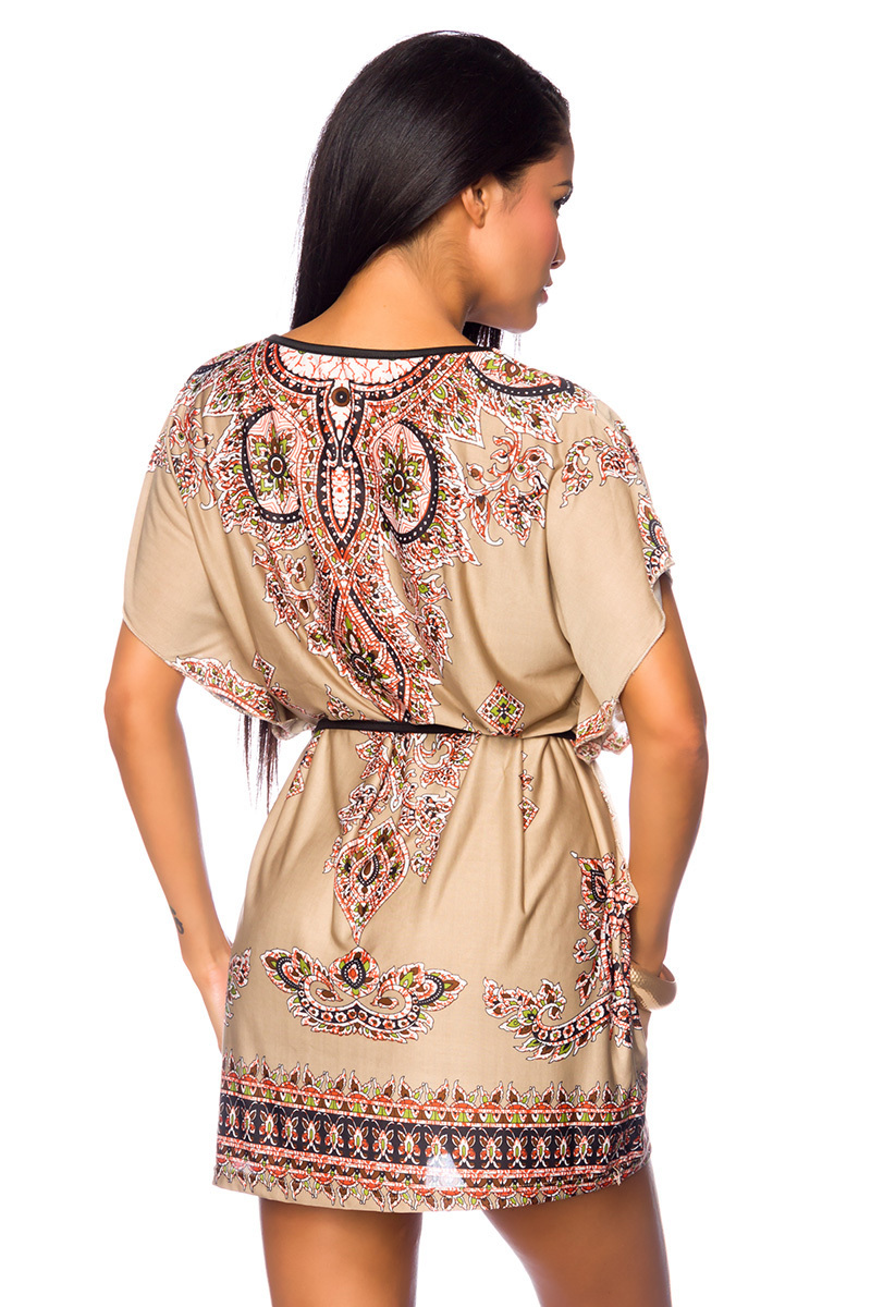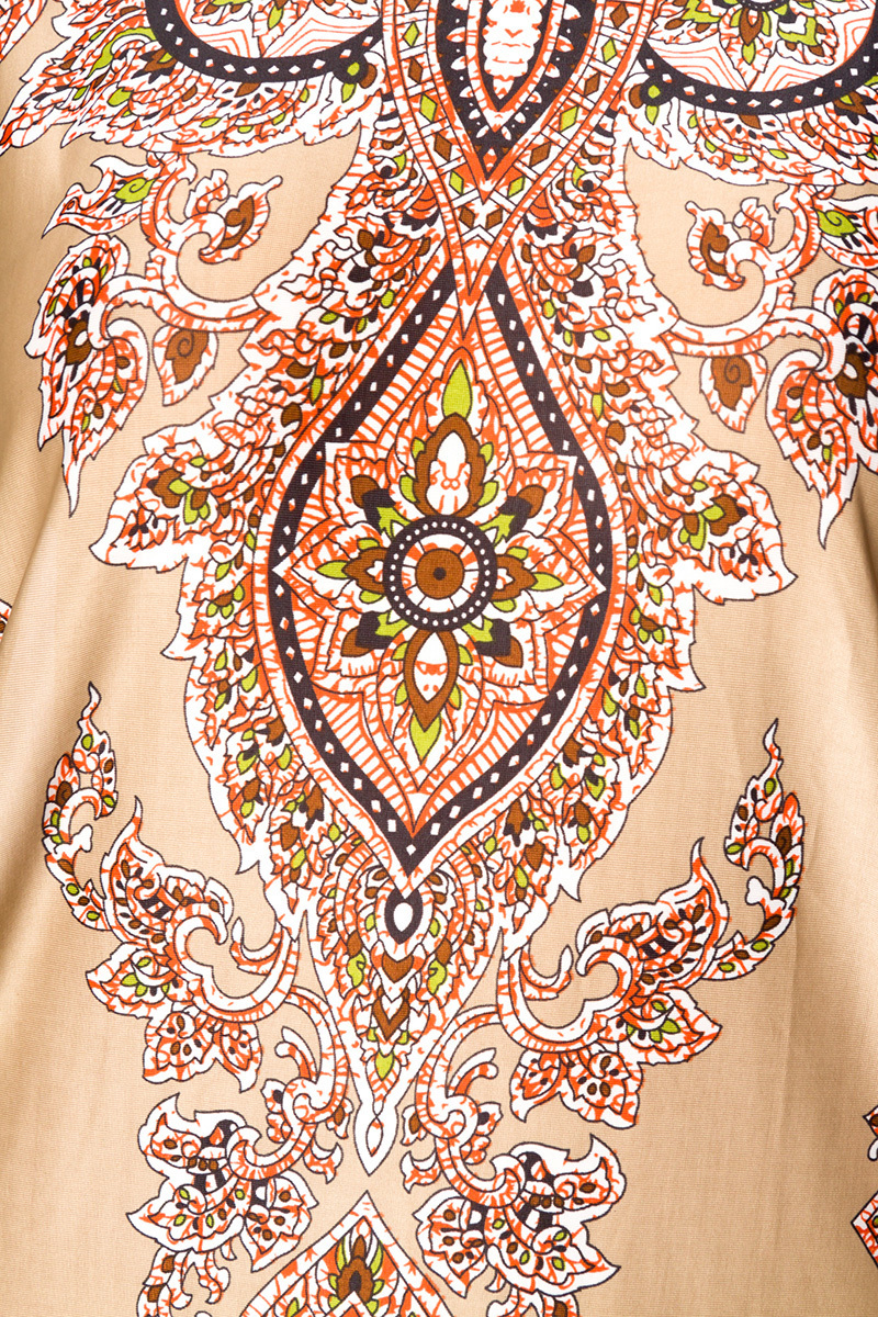 Produktinformationen "Beige Damen Tunika mit Paisleymuster weit geschnitten mit angeschnittenen Ärmeln braun"
