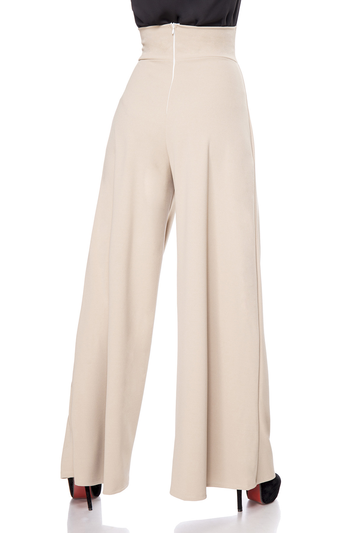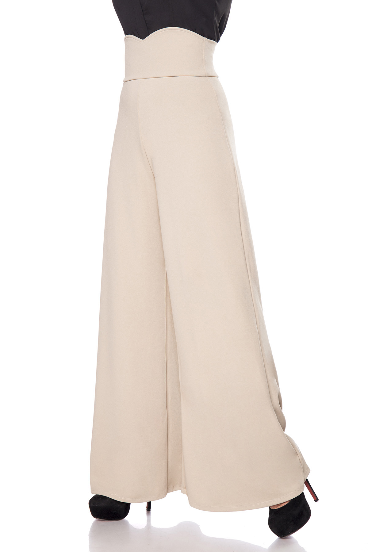 Beige weite Schlaghose herzförmiger Bundabschluss mit High Waist und Reißverschluss an der Hinterseite einfarbig Lange-Hose Rockabilly mit hohem Bund Retro