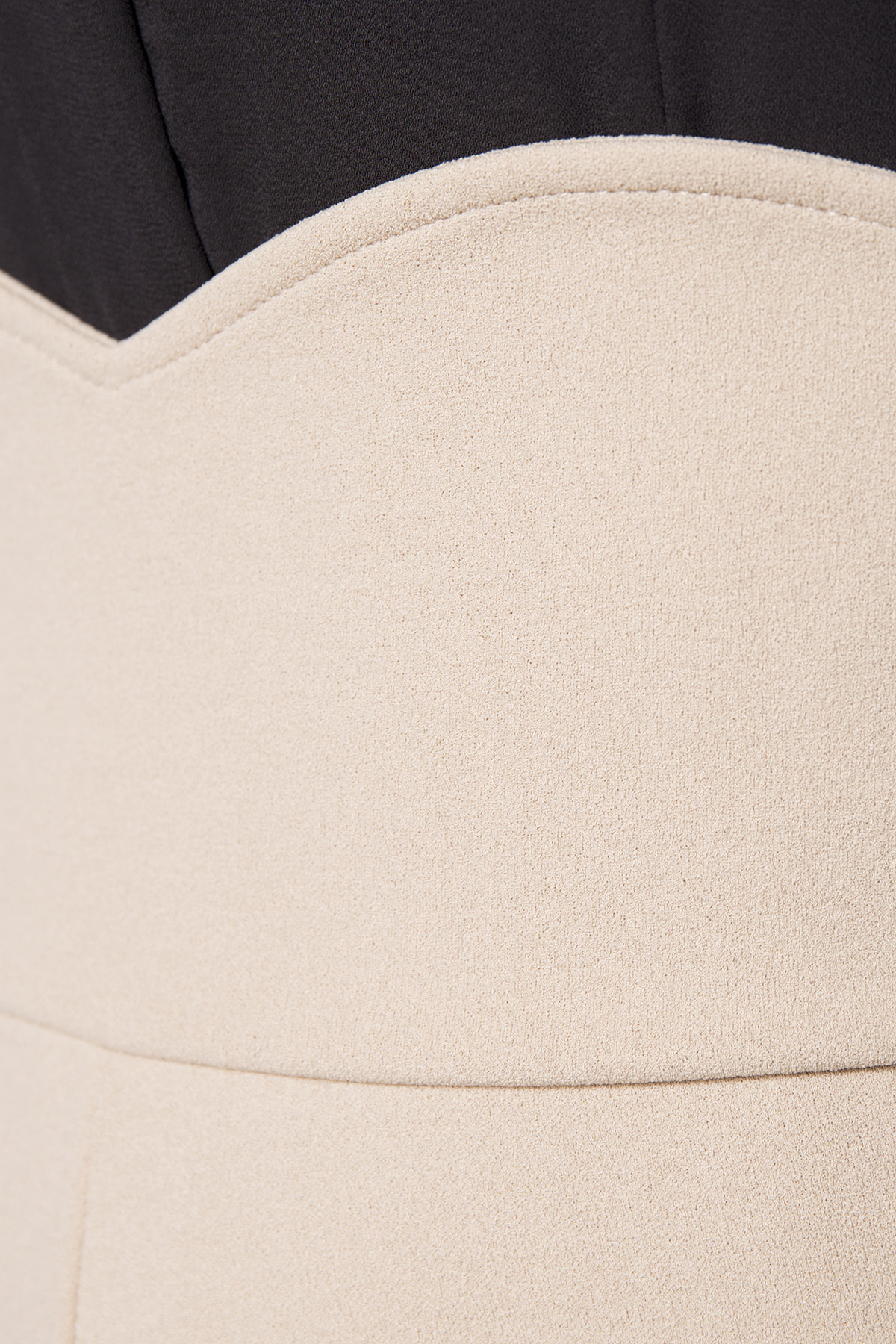 Beige weite Schlaghose herzförmiger Bundabschluss mit High Waist und Reißverschluss an der Hintersei