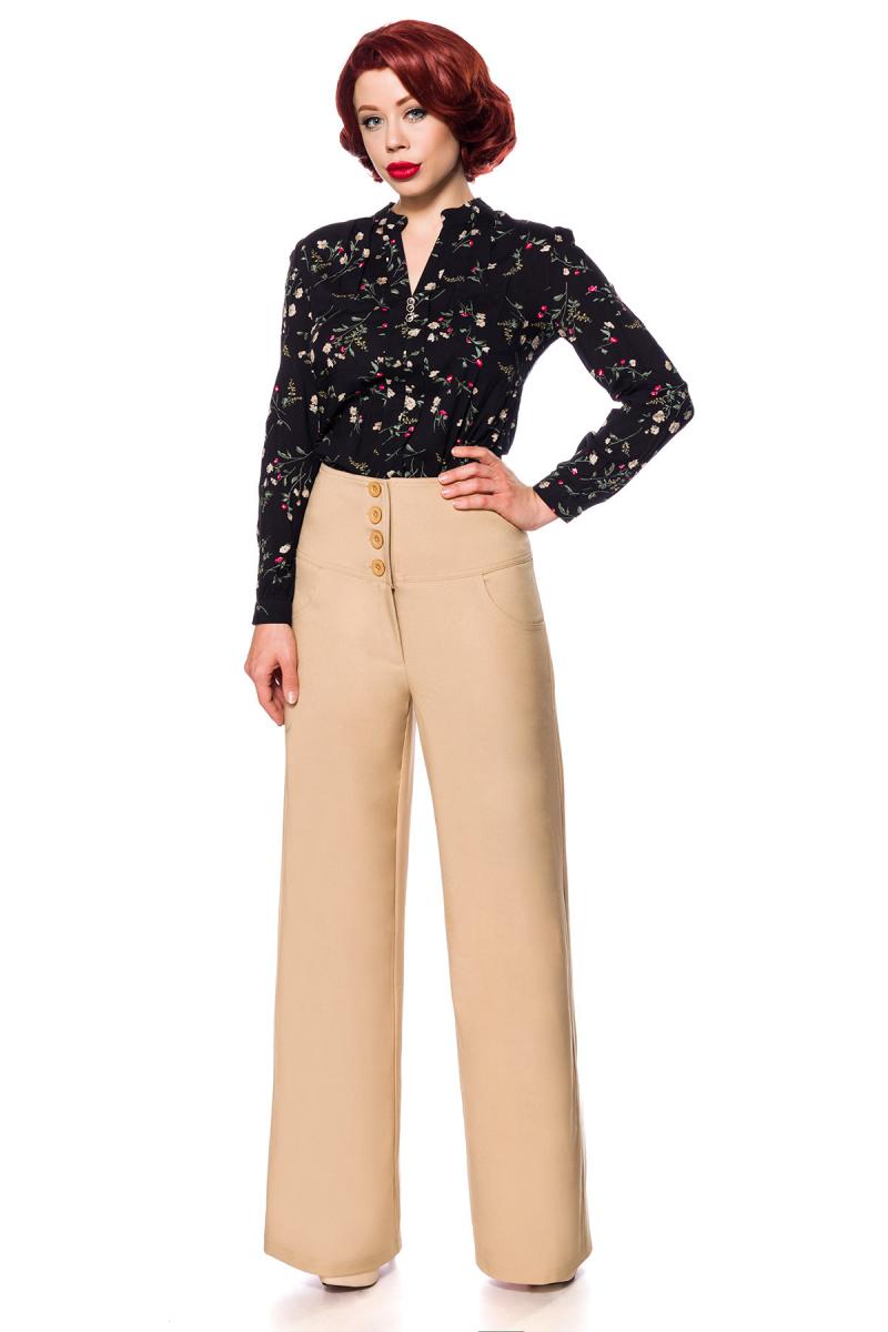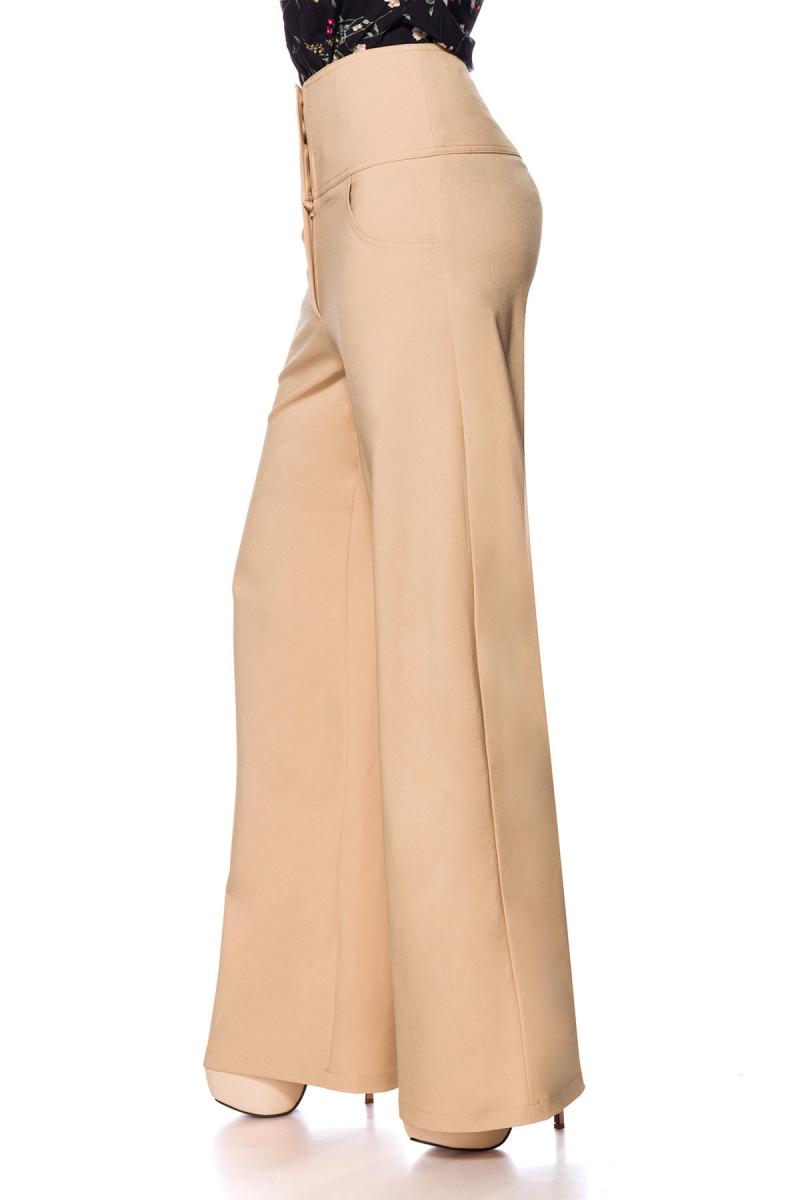 Weite Beige Schlaghose mit High Waist Bund und große Knöpfe Eingriffstaschen Marlenehose einfarbig Lange-Hose Rockabilly mit Knöpfen RetroTolle weite Schlaghose hoher Bund mit seitlichen Eingriffstaschen und dekorativen Knöpfen im Vorderteil. Der Hose hat einen Reißverschluss und ist aus angenehm weichem und elastischem Material. Innere Beinlänge in Größe XS ca. 78cm.Jersey Material: 100% Polyester; Lieferumfang:Hose; Farbe: Beige