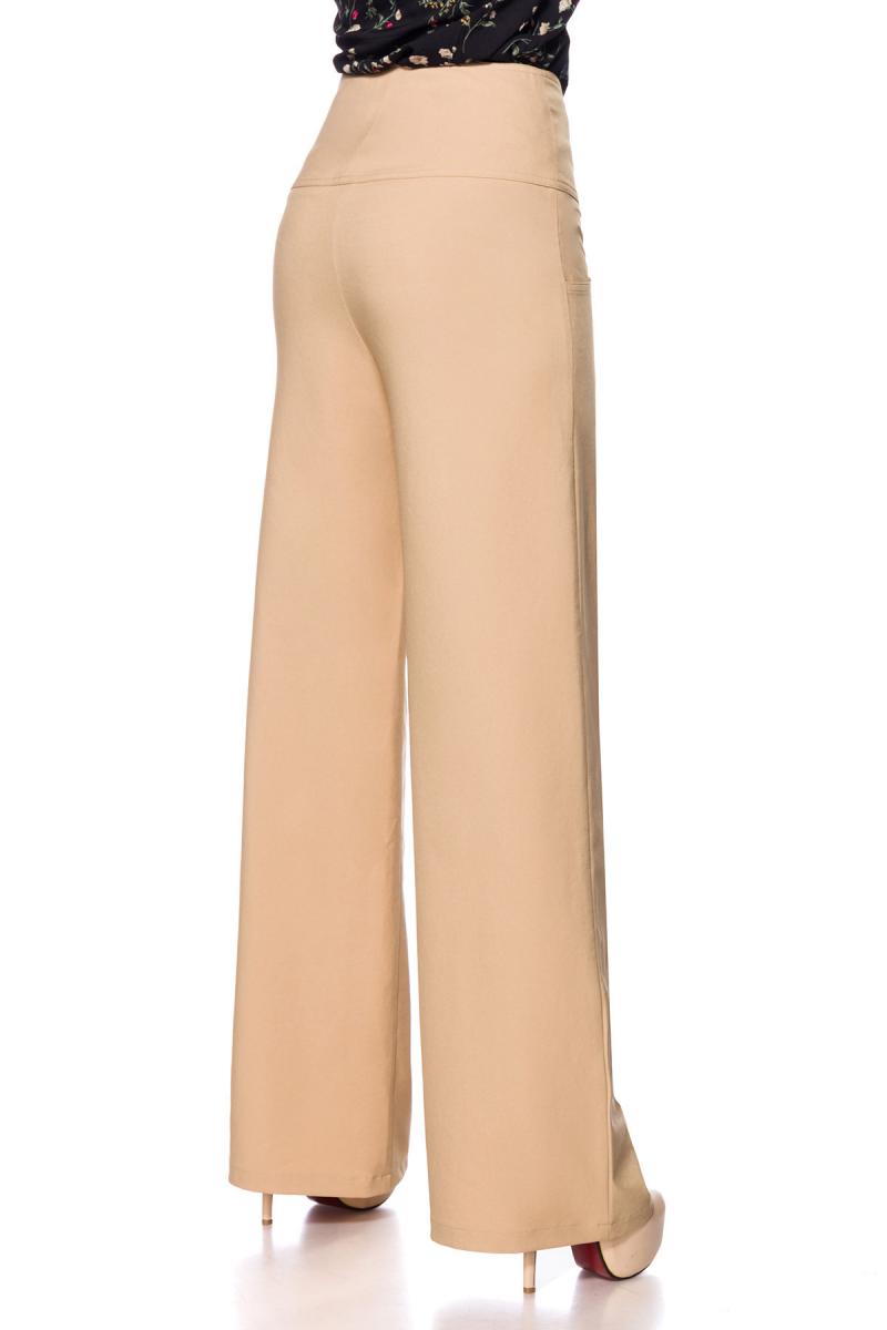 Produktinformationen "Beige weite Schlaghose mit High Waist und große Knöpfe Eingriffstaschen Marlenehose einfarbig Lange-"