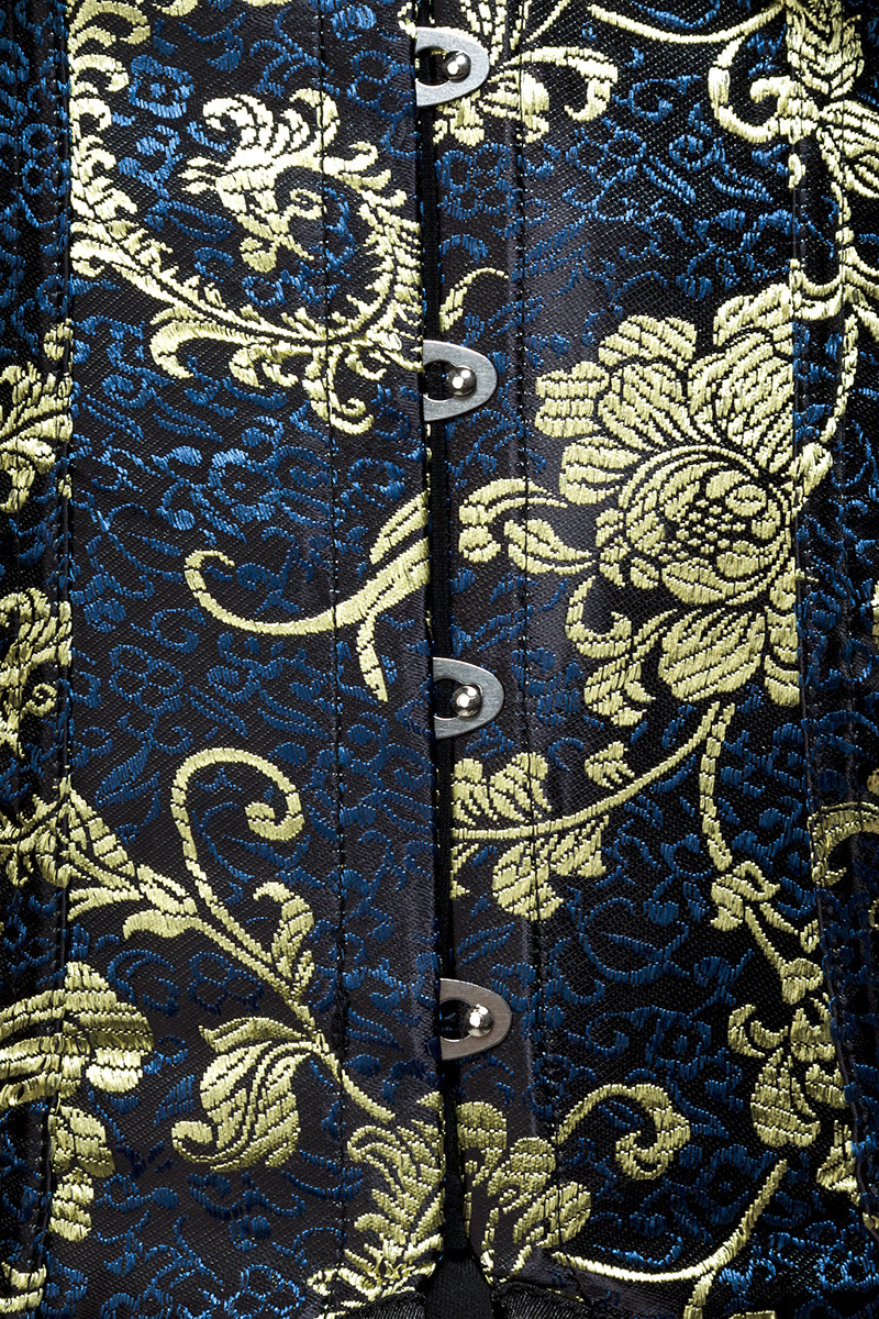 Produktinformationen "Blau goldene Damen Dessous Brokat Unterbrust Corsage mit floraler Musterung zum Schnüren mit Stützst"
