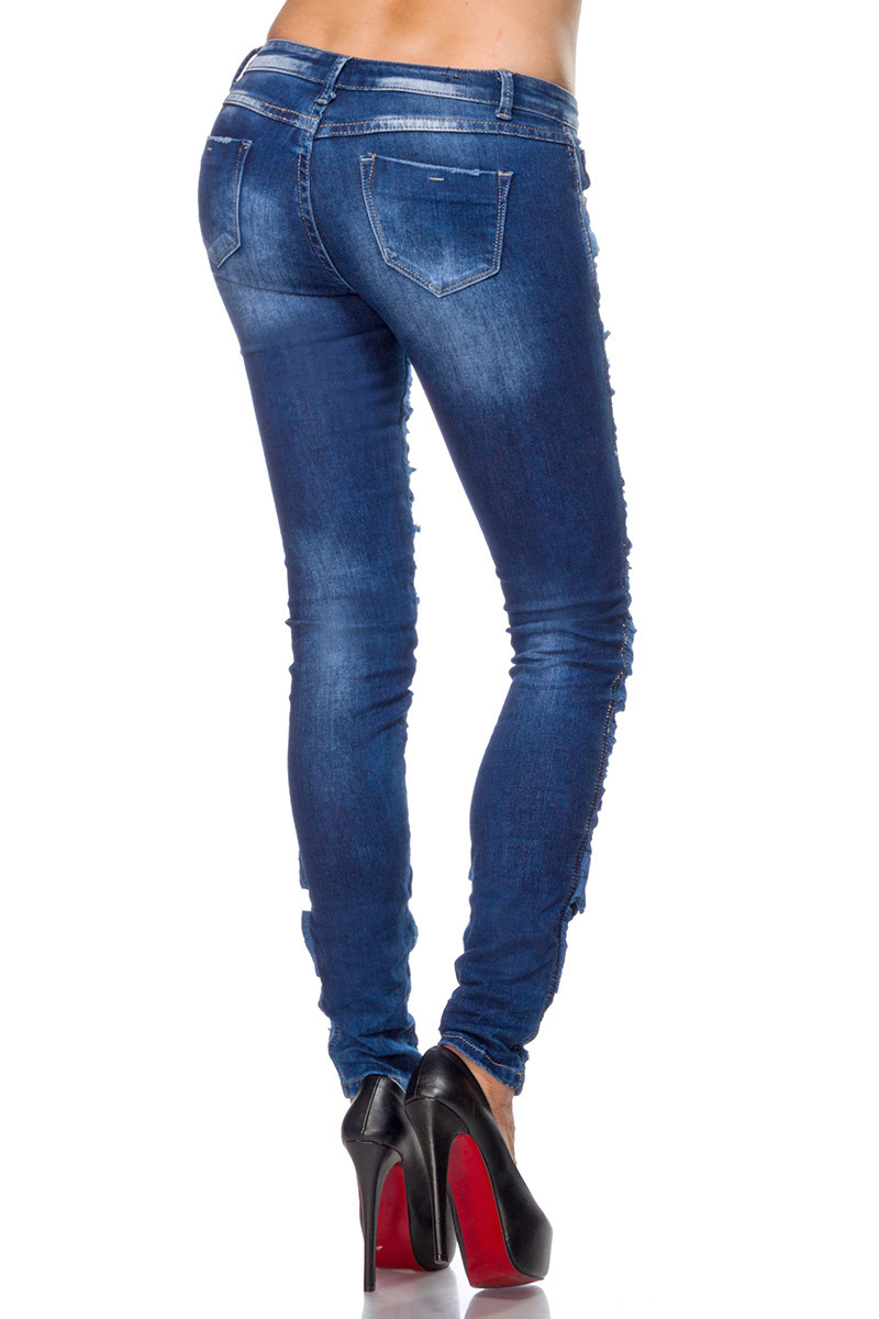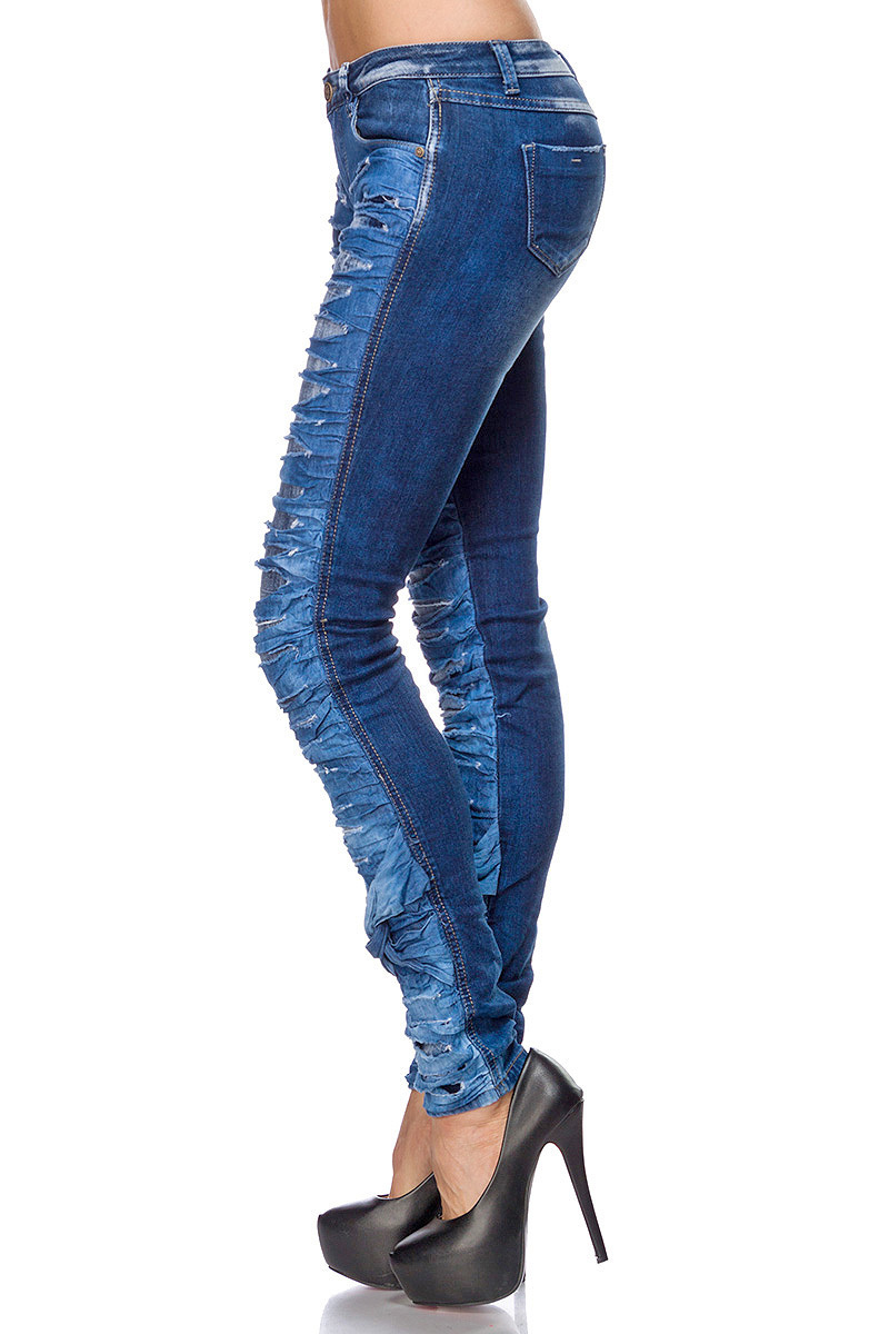 Produktinformationen "Blaue Damen Jeans mit zweilagiger Vorderseite und Rissen Five-Pocket-Style schmaler Schnitt"