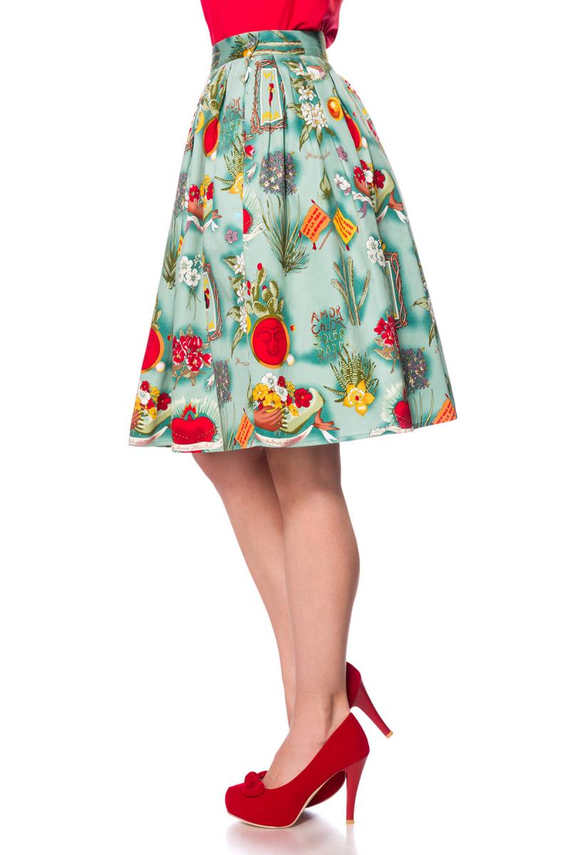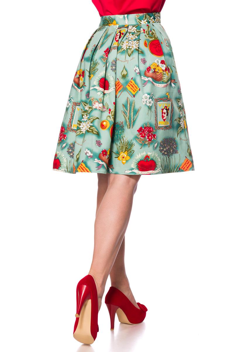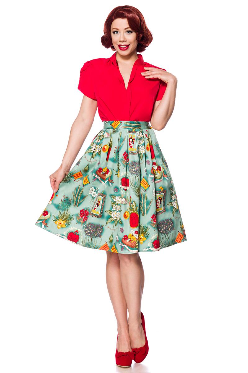Blauer ausgestellter Vintagerock mit hohem Bund und Reißverschluss seitlich Blumenmuster knielang Rockabilly Rock Damen RetroToller ausgestellter Vintagerock Blüten und Blumen, Knie umspielend und mit hohem Bund High Waist.Der Rock ist mit Blumenmuster mit angesetzten Kellerfalten und hat einen seitlichen Reißverschluss und ist aus angenehm weichem und hochwertiges Material. Farbe: Blau/bunt Material: 96% Baumwolle, 4% Elasthan; Lieferumfang:Rock