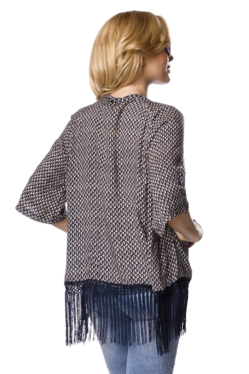 Produktinformationen "Blaues kurzes Damen Jäckchen mit Fransen und angeschnittenen Ärmeln Damen Cardigan"