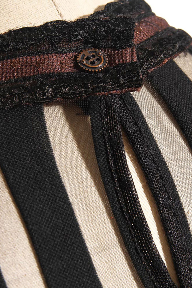 Braune Spitzenbluse mit Netzelementen Oktopus Brosche und Spitzenjabot SteampunkSehr detailreiche Damen Steampunk-Spitzenbluse mit Oktopus-Brosche und Spitzenjabot.Ein schmaler Stehkragen und gerüschte Ärmelchen runden die Bluse ab. Die Bluse hat auffällige Spitzen- und Netzelemente sowie ein geschnürtes Rückteil. Rückenlänge in Größe S ca. 54 cmMaterial:100% Polyester; Farbe:braun/schwarz; Lieferumfang:Bluse, Brosche