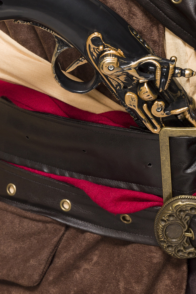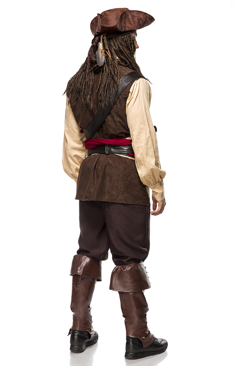 Produktinformationen "Braunes Herren Piraten Verkleidung aus Lederoptik mit Weste Hemd und Hose und Gürtel Kapitän Piraten"