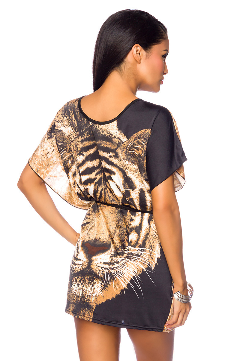 Bunte Damen Tunika mit Tigerkopf weit geschnitten mit angeschnittenen Ärmeln