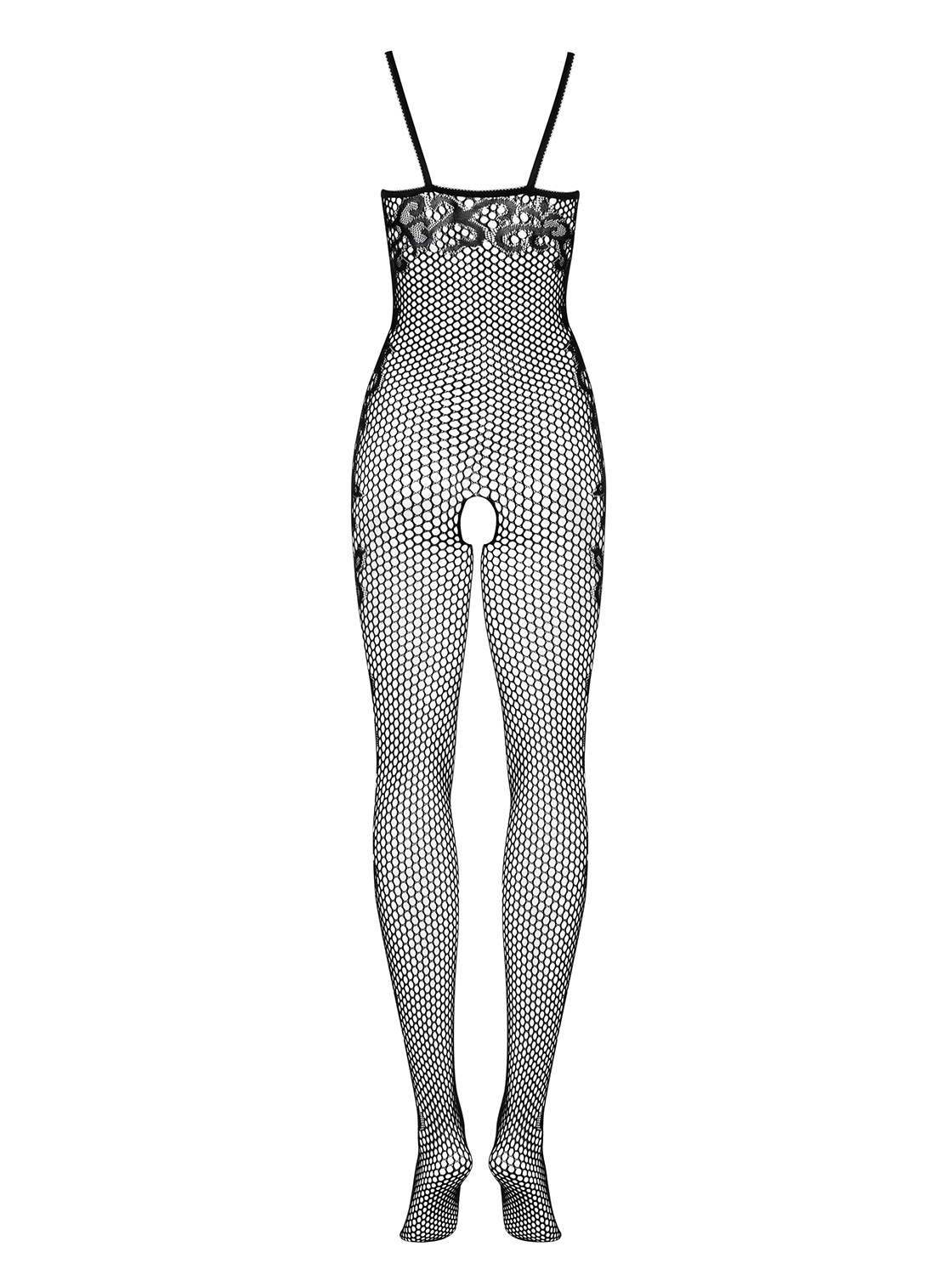 Sexy Bodystocking mit feiner, durchsichtiger Masche und Blumenmotiv auf Brust, Rücken und beiden Seiten. Unglaublich weiches und elastisches Material. Im Schritt offen!