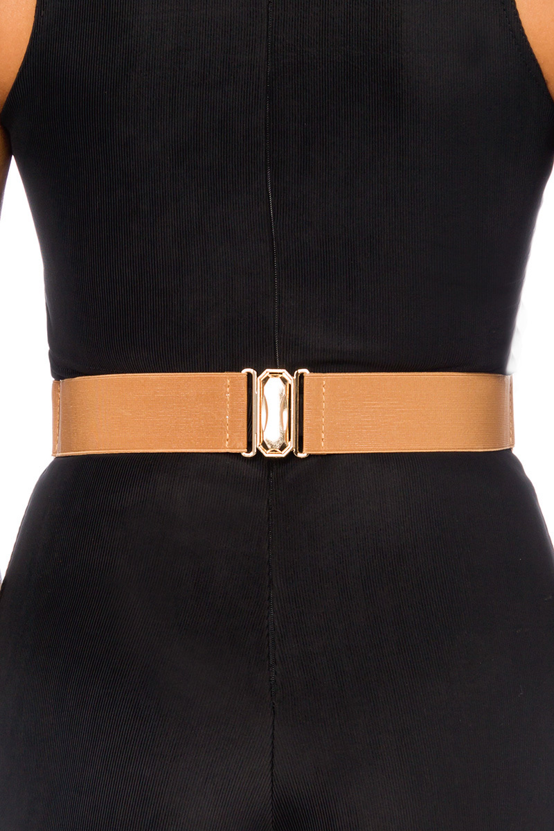 .Damen Taillengürtel mit Lochmuster und elastischem Gürtelband, er ist mit einem auffälligem Haken zu schließen. Gürtelbreite ca. 4 cm, Schnallenbreite ca. 6 cm
