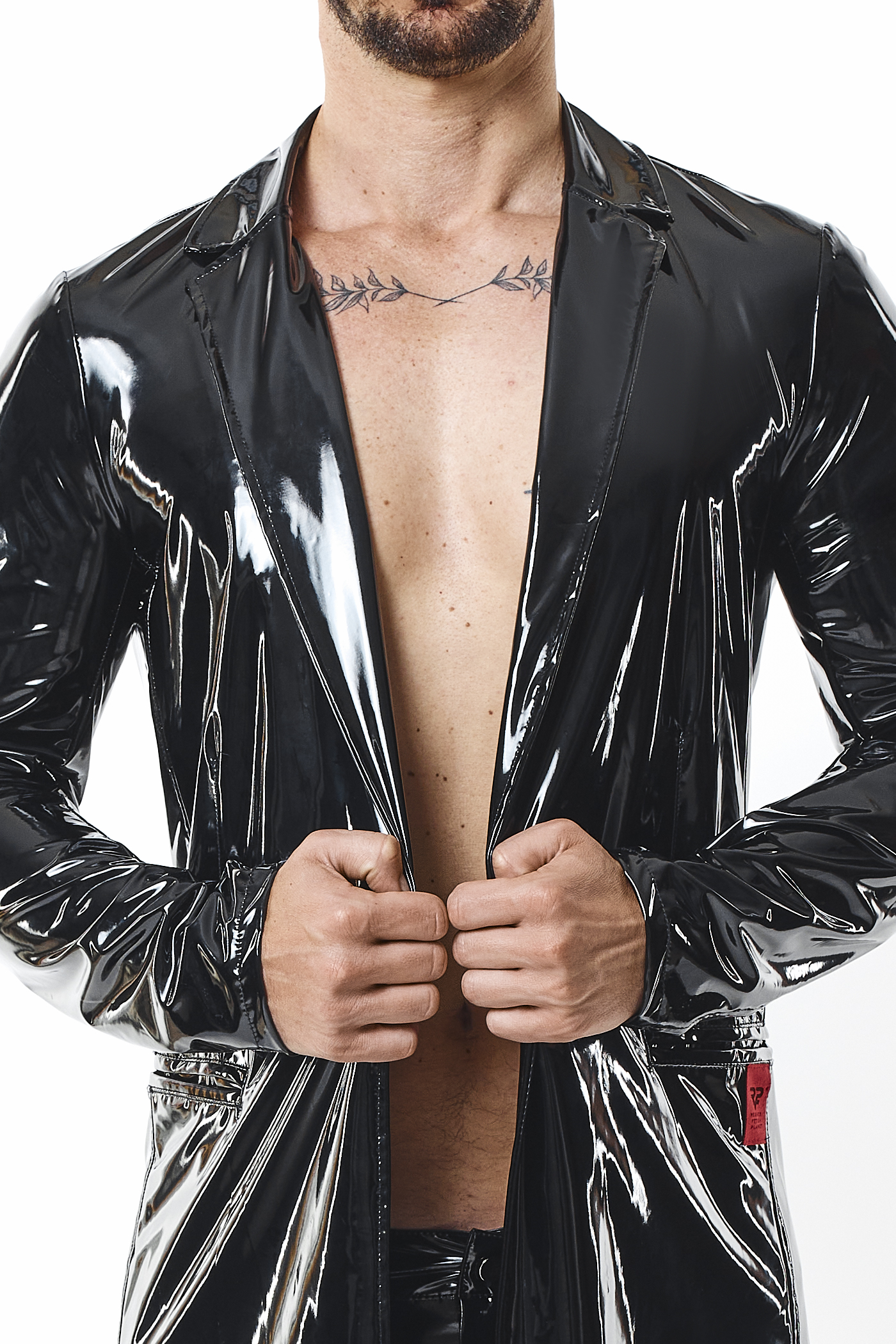 Halblanger schwarzer Herren Lack-Mantel glänzend