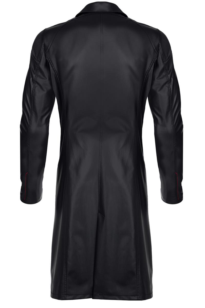 Ein langer, eleganter Mantel, inspiriert von den klassischen Trenchcoats. Aus hochwertigem schwarzem Wetlook-Material. Etwas schmalere Taillenlinie und verbreiterte Brust- und Rückenlinie verleihen der Silhouette einen massiveren und leicht einschüchternden Look. Sie vergrößern optisch Brust und Rücken, während sie die Taille schlank machen. Die klassische Form des Mantels wird durch den Kragen betont. Ein schönes und einzigartiges Element auf der Rückseite sind die gewölbten Nähte im oberen Teil des Mantels. Der Mantel ist perfekt für das tägliche Styling. Lässt Sie durch ein gut gewähltes Styling mit einem originellen Look glänzen. Zwei funktionelle Taschen. Rote Nähte und ein roter Alcantara-Patch sind auffällige, raffinierte Details. Slim-Fit Der Artikel ist in einer Box mit Bild verpackt.Pflegehinweis : 30Grad Handwäsche Farbe : schwarzMaterial : 95% Polyester / 5% Elastanerhältliche Größen : S, M, L, XL, XXL