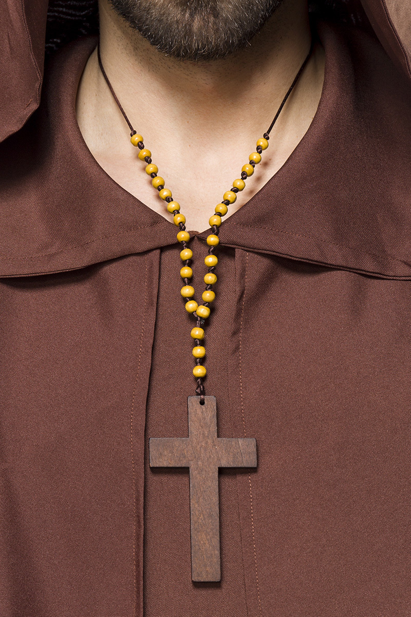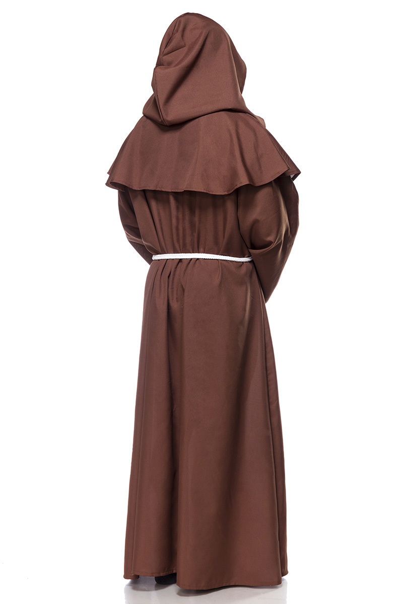 Produktinformationen "Herren brauner Mönch Anzug Kostüm Verkleidung mit Cape und Gürtel aus Kreuz-Kette Umhang Hängeärmel"