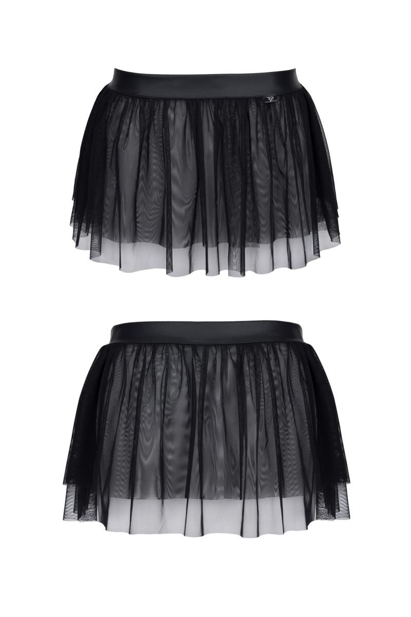 Herren fetisch Mini Petticoat Rock schwarz mit Netzstoff und wetlook Bund Crossdresser Skirt transpa