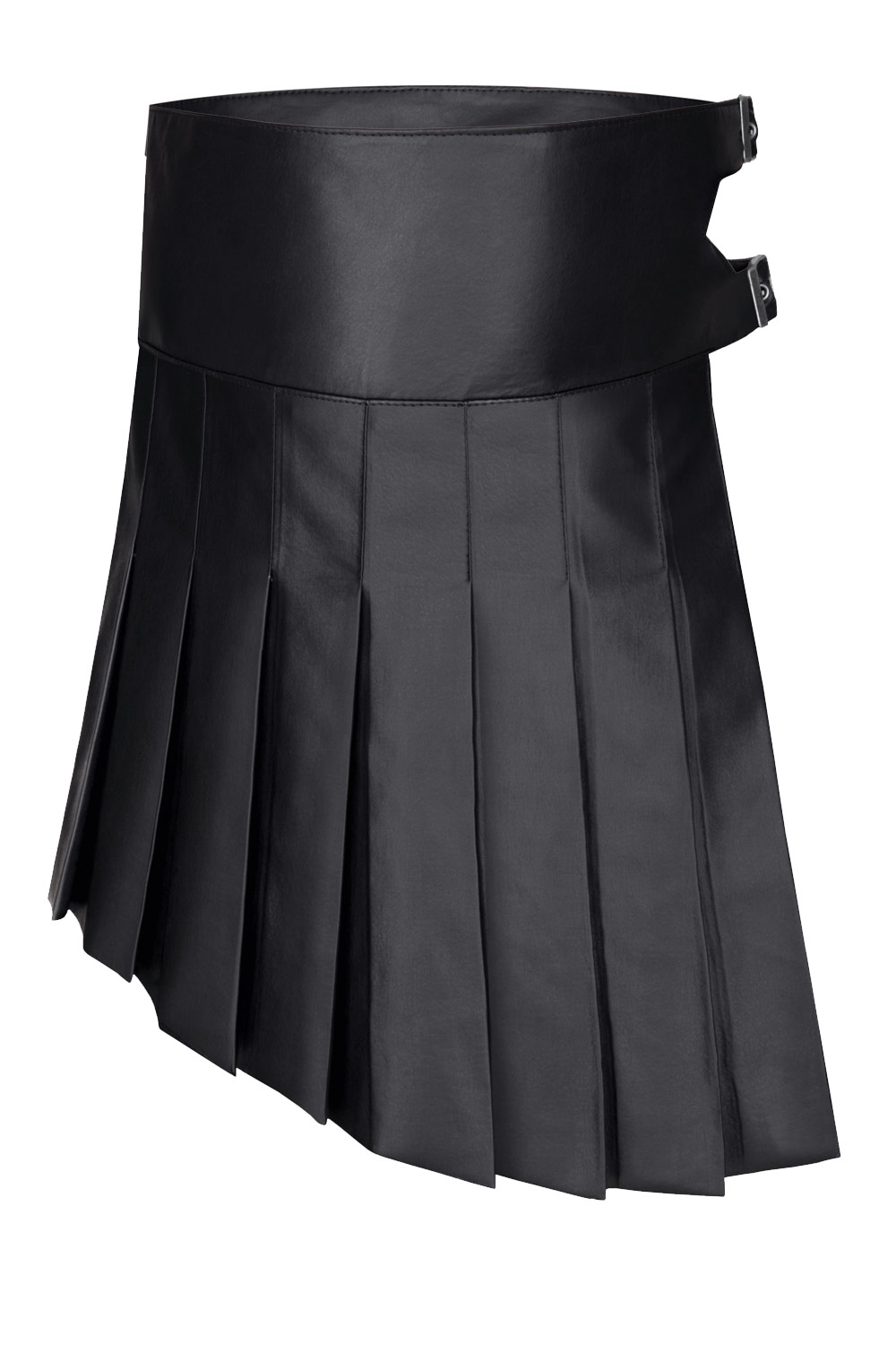Herren wetlook Rock schwarz Faltenrock im Gladiator Stil mit Schlitz und 2 Gürtelschnallen knielang