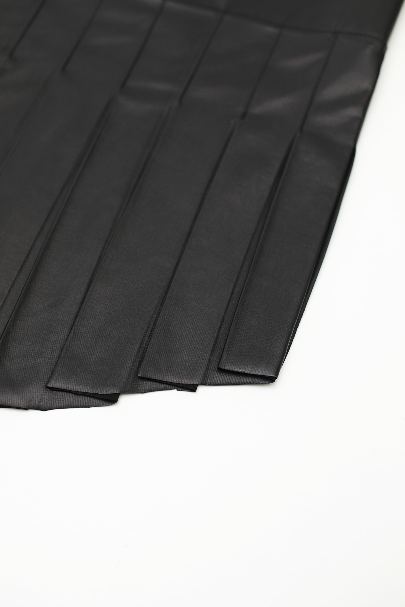 Spektakulärer und einzigartiger Rock im „Gladiator“-Stil. Komplett aus hochwertigem schwarzem Wetlook-Stoff gefertigt. Ein breiter Gürtel oben sorgt dafür, dass es schön an der Taille und Hüfte sitzt. Auf der linken Seite befinden sich zwei Gürtel mit dekorativen und verstellbaren Halterungen. Es erleichtert das An- und Ausziehen des Rocks und verleiht der Silhouette eine bessere Passform. Was ins Auge fällt, sind die breiten vertikalen Falten, die oben und nicht unten zusammengenäht sind. Durch diese Lösung wirken die Hüften schlanker und attraktiver. Unten fällt der diagonale Schnitt auf, der ihm ein einzigartiges und originelles Aussehen verleiht.  Der Artikel ist in einer Box mit Bild verpackt. Pflegehinweis : 30Grad Handwäsche   Farbe : schwarz