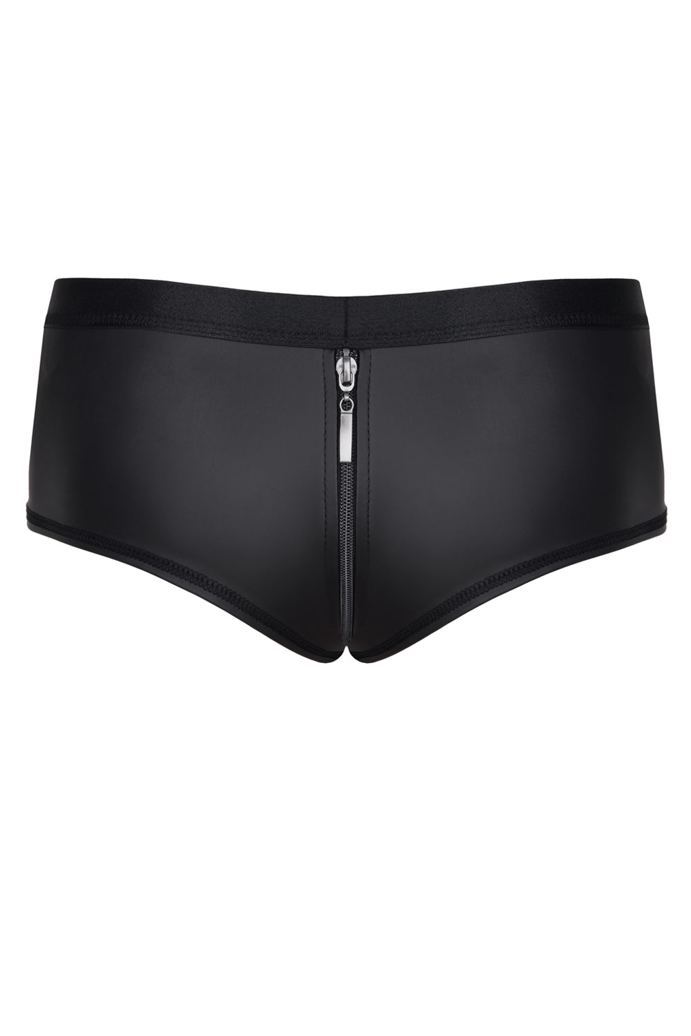 Shorts aus 360 Wetlook-Stoff und dekorativem, perforiertem Wetlook. Durch die elastischen Eigenschaften dieses Stoffes passen sich die Shorts perfekt dem Körper an und betonen das attraktive Aussehen des Gesäßes. Oben befindet sich ein breites, angenehm anzufassendes, schwarzes Gummiband. Auf der Vorderseite fallen der dekorative, perforierte Wetlook und die beiden Druckknöpfe in Silbermetallic auf. Ein weiteres erwähnenswertes Detail ist der dunkle Reißverschluss vorne und hinten, der von beiden Seiten geöffnet werden kann. Es regt die Kreativität beim intimen Spielen an. Das einzigartige Design der Shorts und die unterschiedlichen Einsatzmöglichkeiten werden von allen geschätzt, denen Aufregung und ein unkonventioneller Look wichtig sind. Der Artikel ist in einer Box mit Bild verpackt. Pflegehinweis : 30Grad Handwäsche Farbe : schwarz