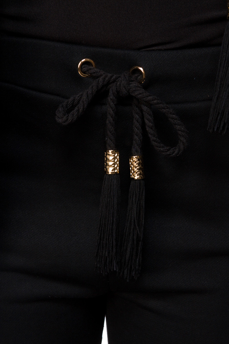 Produktinformationen "Schwarzer zweiteiliger Damen Jogginganzug mit Kapuze und Reißverschlüssen Tunnelzug aus Baumwolle Zi"